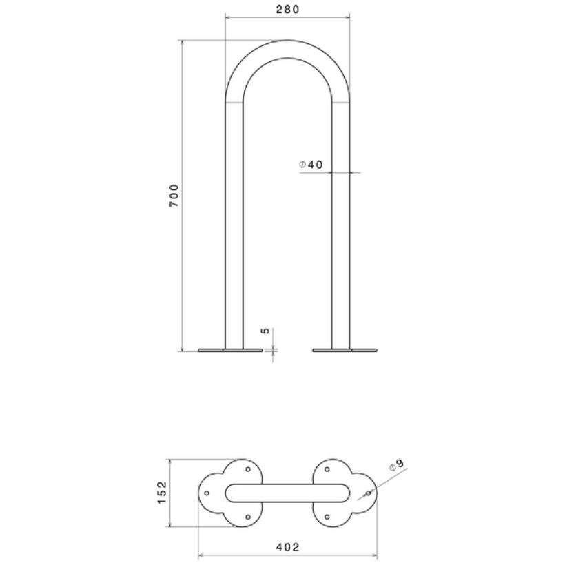 Pour une installation adéquate, il est monté sur une platine de 152 mm de diamètre et 5 mm d'épaisseur, dotée de trous de fixation de 9 mm. Notez que les vis et chevilles ne sont pas fournies, car elles dépendent du type de sol. Avec des dimensions hors tout de 40,2 x 15,2 x 70 cm et des dimensions utiles de 28 x 4 x 70 cm, ce range-vélos allie praticité et solidité.