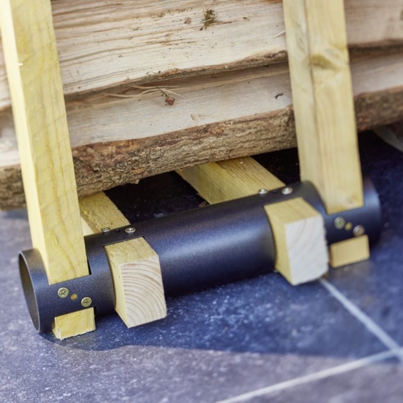 Découvrez notre support de rangement pour bûches, un accessoire pratique et fonctionnel qui simplifie le stockage de votre bois. Grâce à son montage simple et rapide, vous pouvez créer un support modulaire à l'aide de lambourdes ou demi-chevrons de section 63 x 38, ajustable à la longueur et à la hauteur souhaitées. Pour une hauteur recommandée de 1,50 m, il est possible d'atteindre des dimensions supérieures en ajoutant un fil de fer ou une corde entre les lambourdes. Pour une protection supplémentaire contre la pluie, il suffit d'installer un toit sur les supports verticaux. Ce rangement garde vos bûches au sec, éloignées du sol et du mur, tout en favorisant une aération optimale pour un séchage de qualité. Fabriqué en tube d'acier Ø 76 mm et d'une épaisseur de 2 mm, son design robuste et élégant est revêtu de poudre noire pour une durabilité accrue. Dimensions : Longueur 34,5 cm, diamètre 7,6 cm, avec un poids de 1,80 kg. Idéal pour un rangement organisé et esthétique de votre bois.