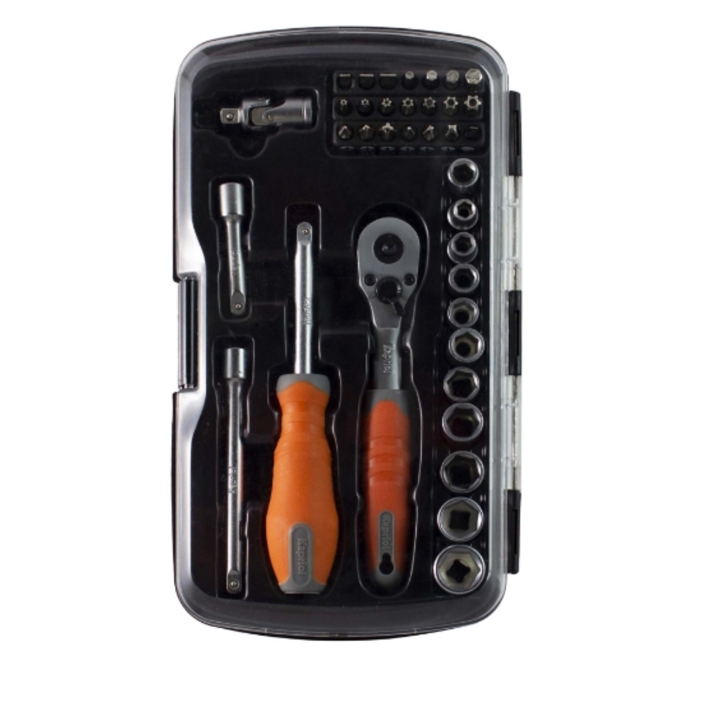 Le kit de clés à douille Kapriol comprend 37 pièces essentielles pour des travaux de vissage et dévissage.