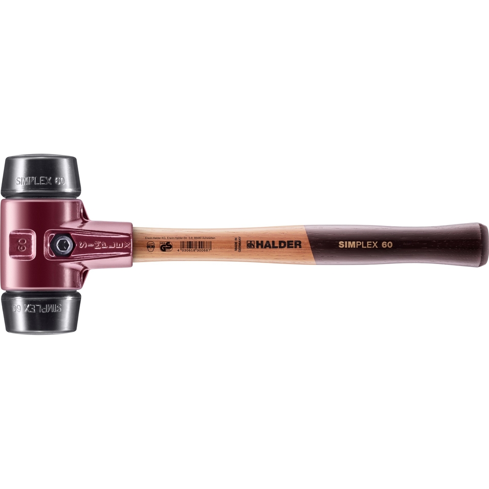 Maillet SIMPLEX avec boîtier en fonte malléable et manche en bois diam 60 caoutchouc chargé - HALDER - 3002.060