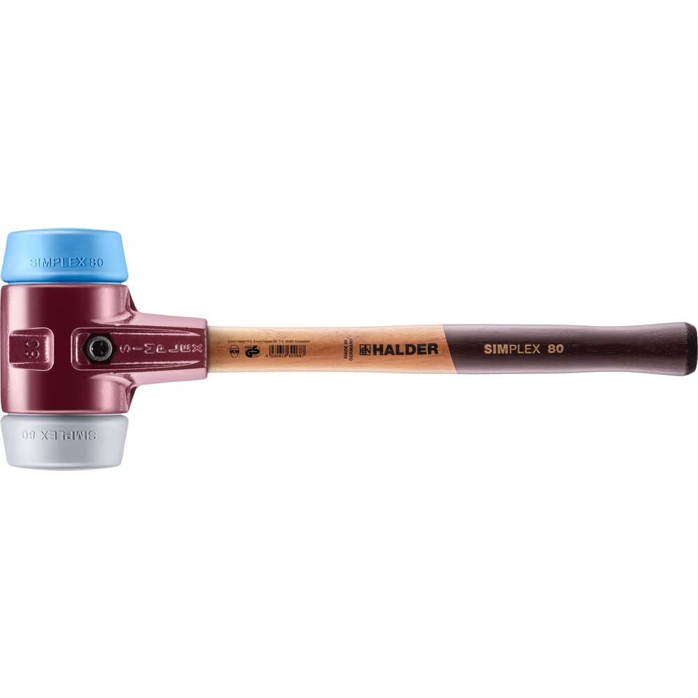 Maillet SIMPLEX avec boîtier en fonte malléable et manche en bois diam 80 TPE souple TPE moyen - HALDER - 3013.080