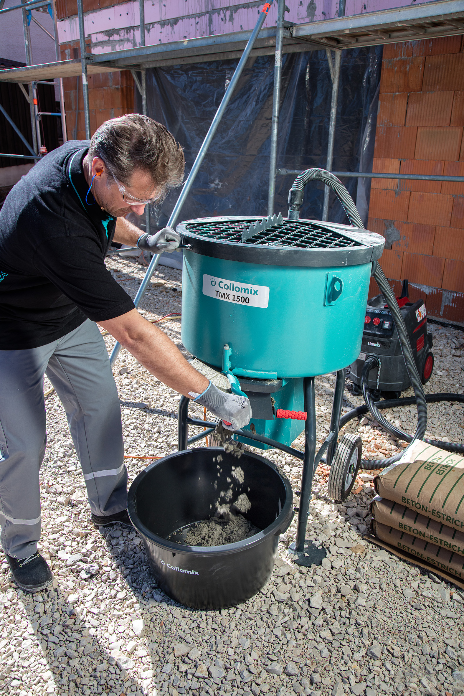 Les modèles TMX, avec leurs outils de mélange à trois bras et leur faible vitesse, sont particulièrement adaptés aux matériaux lourds. Contrairement aux mélangeurs à chute libre, le mélange actif garantit un résultat sans grumeaux. Le TMX mélange pour vous pendant que vous vous occupez d'autres tâches sur le chantier.