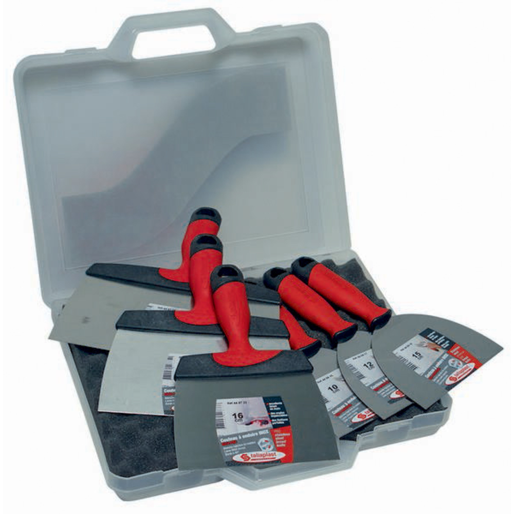 Essentiel des couteaux pour plaquiste.; Lame à la planéité contrôlée pour des finitions parfaites.; Manche en bi-matière offrant une excellente prise en main.; Malette de rangement et transport.