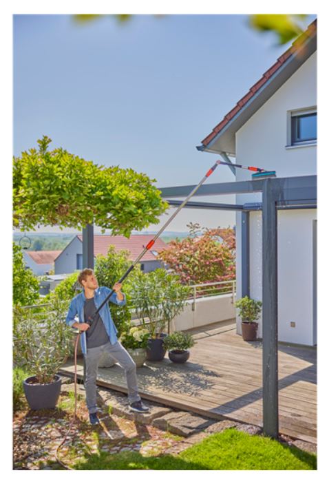 Conçu pour une utilisation professionnelle, le manche télescopique Cleansystem de GARDENA se fixe facilement à votre tuyau d'arrosage. Son amplitude de réglage lui permet de s'adapter à tous les types de travaux, que ce soit pour nettoyer des façades, des vitres ou des surfaces extérieures. La possibilité de régler le débit d'eau directement au niveau de la poignée garantit un contrôle optimal de la pression, ce qui se traduit par une flexibilité accrue lors du nettoyage. De plus, l'utilisation de bâtonnets de shampoings GARDENA en option (réf. 989-30) améliore considérablement l'efficacité du nettoyage, pour un résultat impeccable.