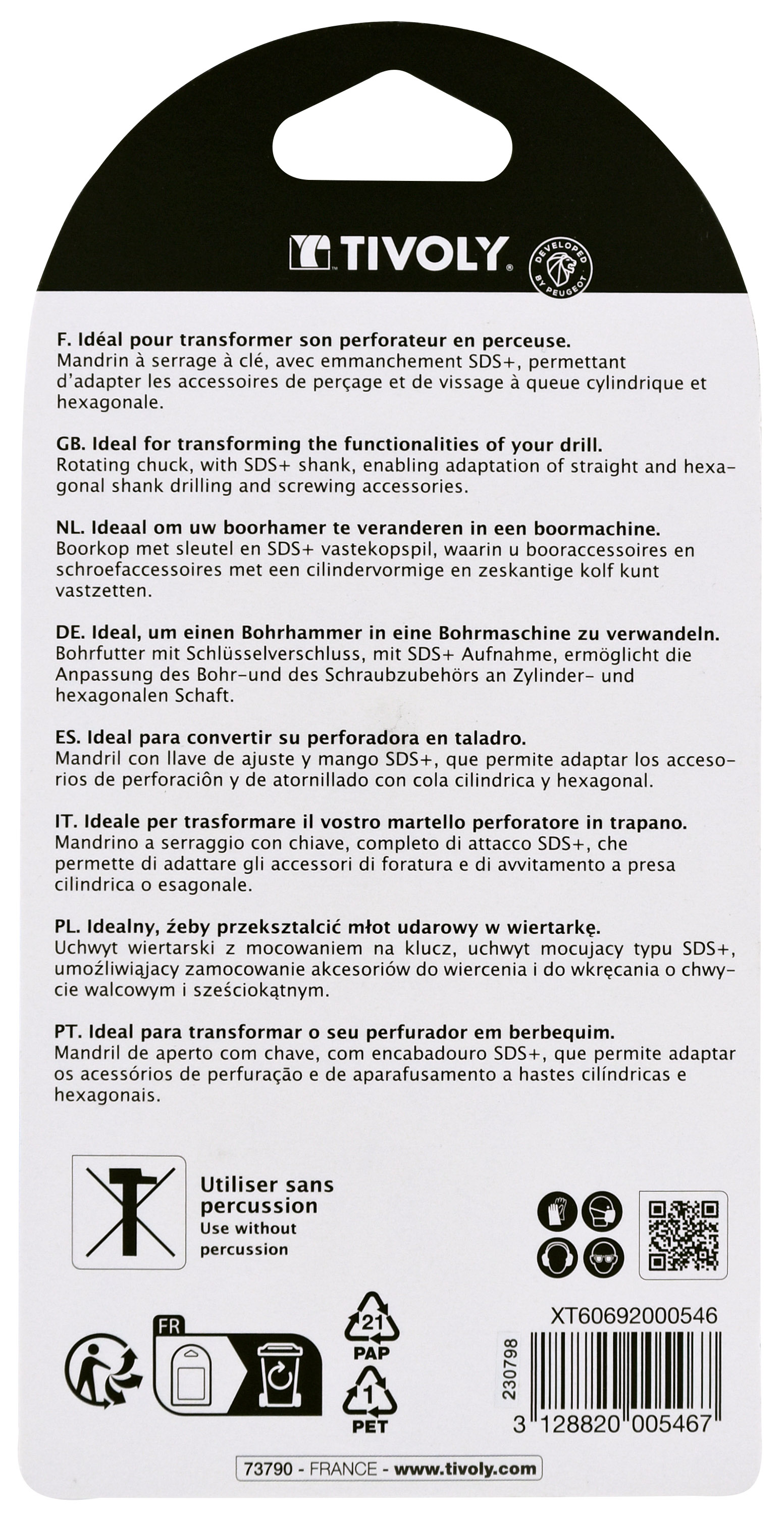 Découvrez Mandrin à clé SDS+ Ø 1,5 à 13mm TIVOLY - XT60692000546 disponible à l'achat
