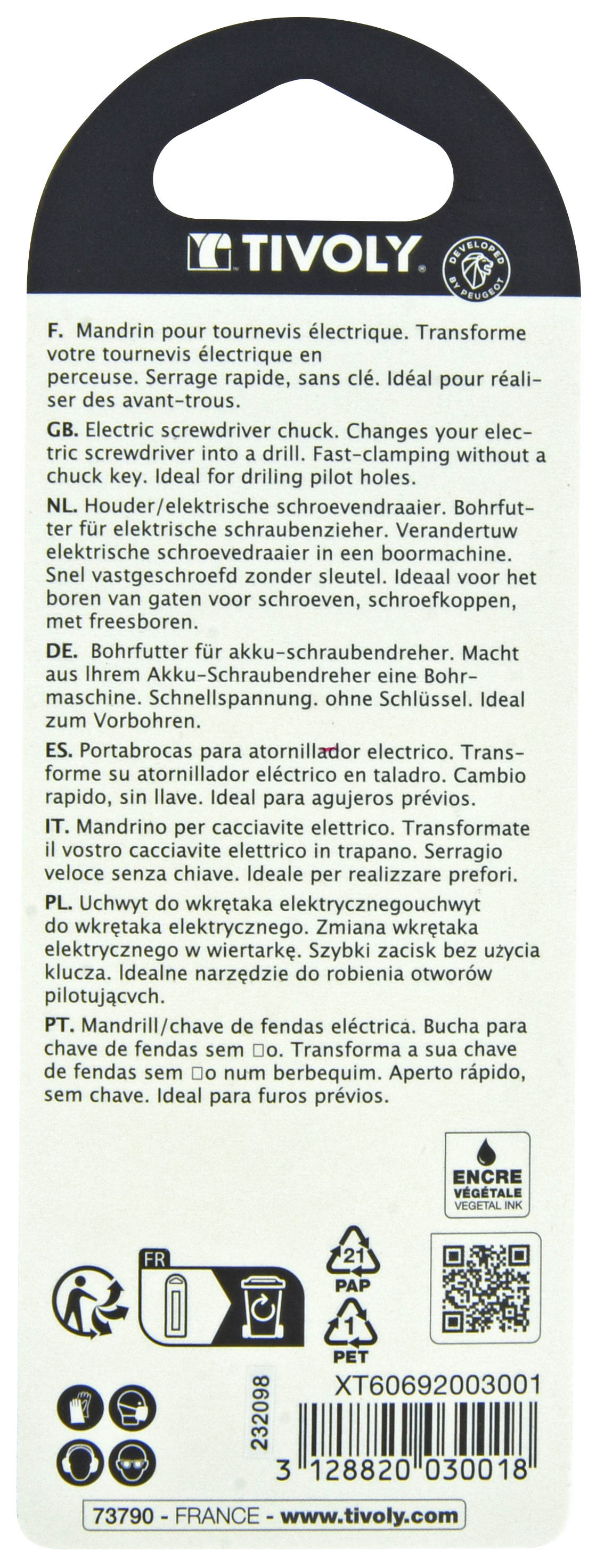 Découvrez Mandrin pour tournevis électrique Ø 0,5 à 6mm TIVOLY - XT60692003001 disponible à l'achat
