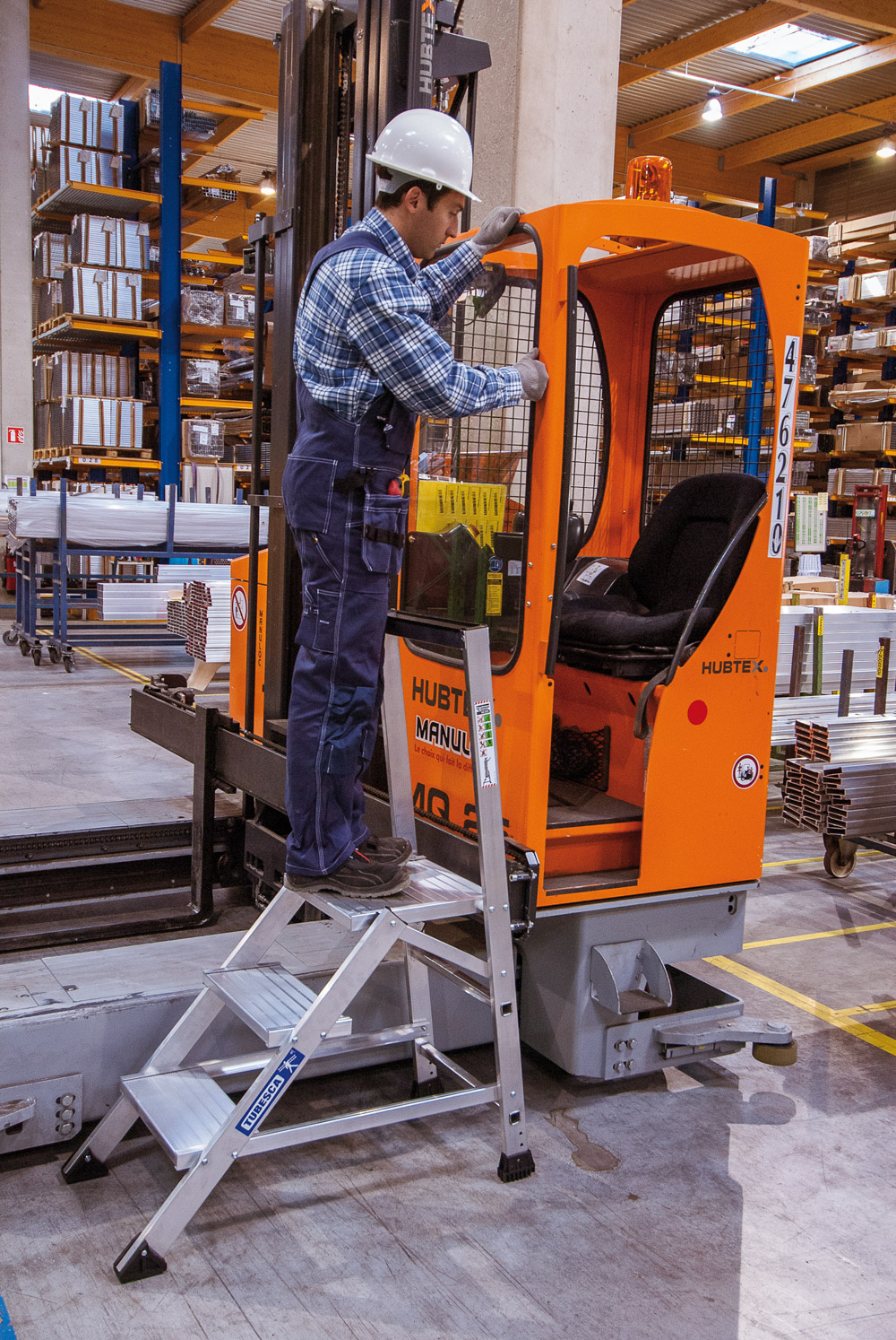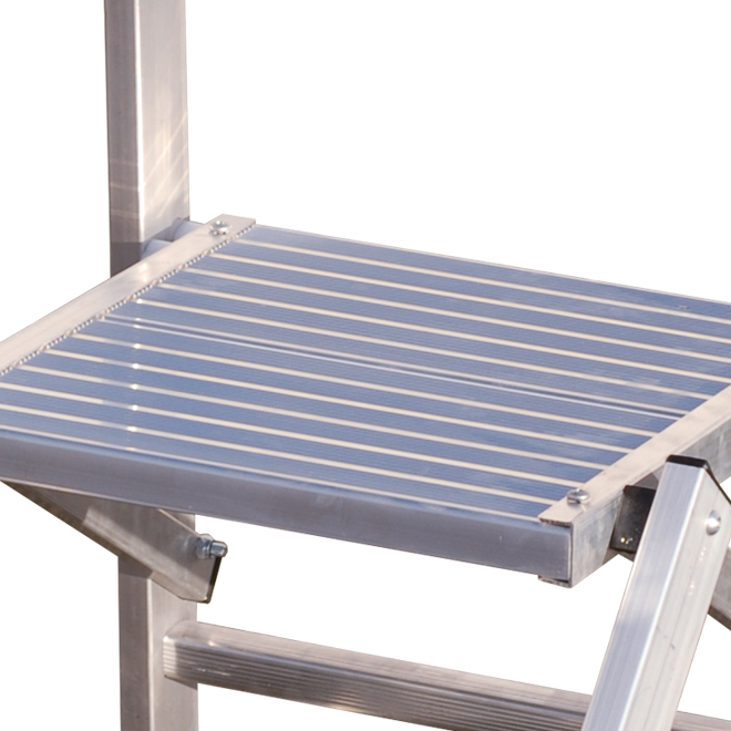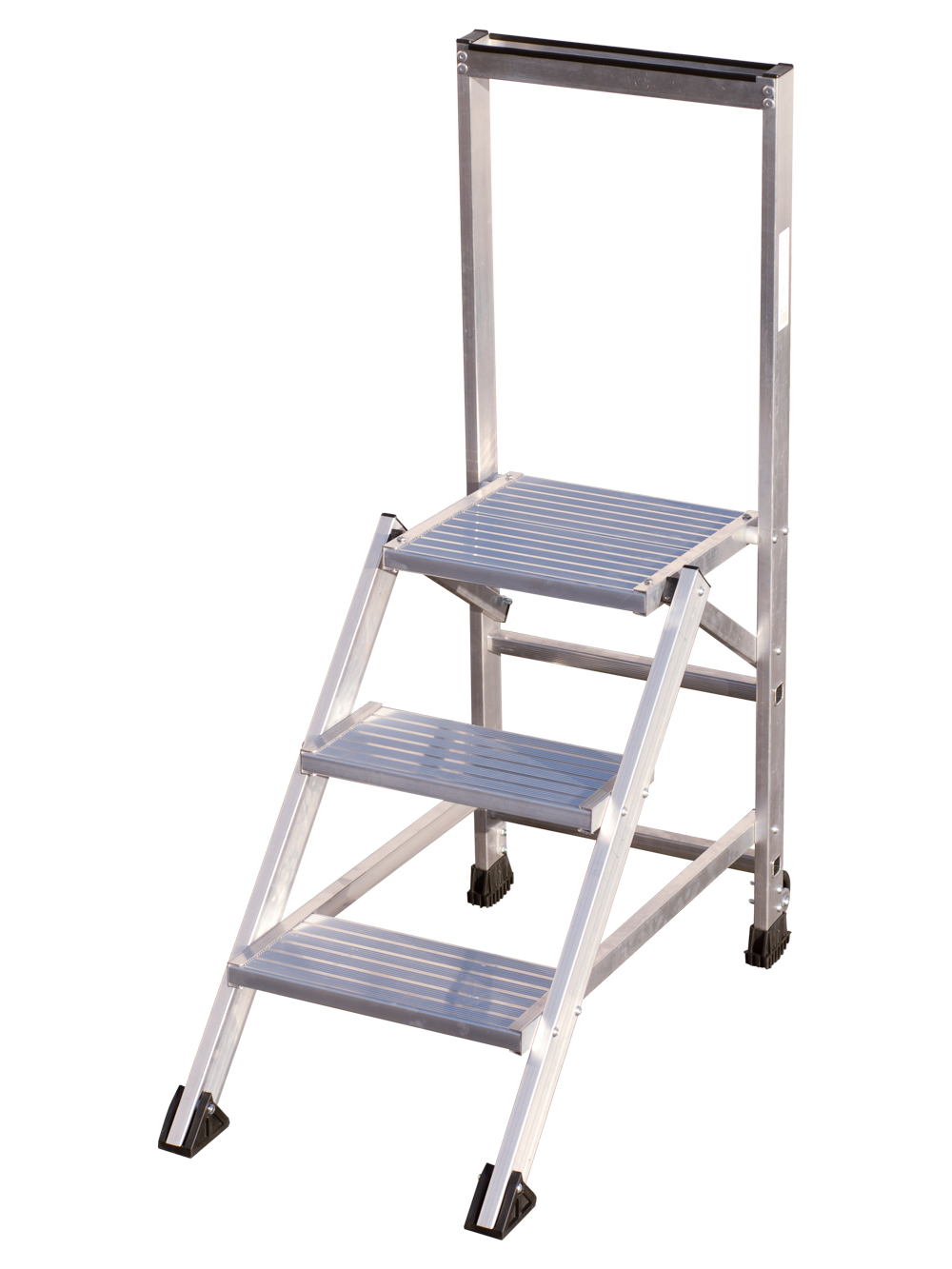 Le marchepied Confort fixe dispose de marches extra larges et d'une plate-forme de 400 x 400 mm avec une structure renforcée faisant de lui un "escalier mobile". Ses surfaces striées et ses sabots antidérapants procurent une sécurité optimum. Il offre à ses utilisateurs un porte-outils en aluminium et des roues de déplacement disponibles en option. Il est conforme à la norme EN 14183 et au décret 96 333. Disponible en version 3 marches avec une hauteur d'accès maxi de 2,70 mètres.