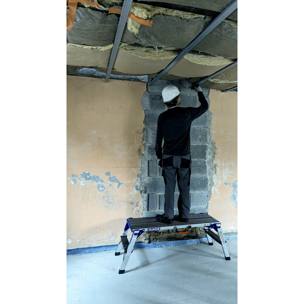 - Grande surface de travail pour plus de confort Assemblage rapide sans outils pour une utilisation facile Marches antidérapantes pour une sécurité accrue Poignée de transport pour un déplacement pratique Capacité de charge jusqu'à 150 kg pour un usage polyvalent