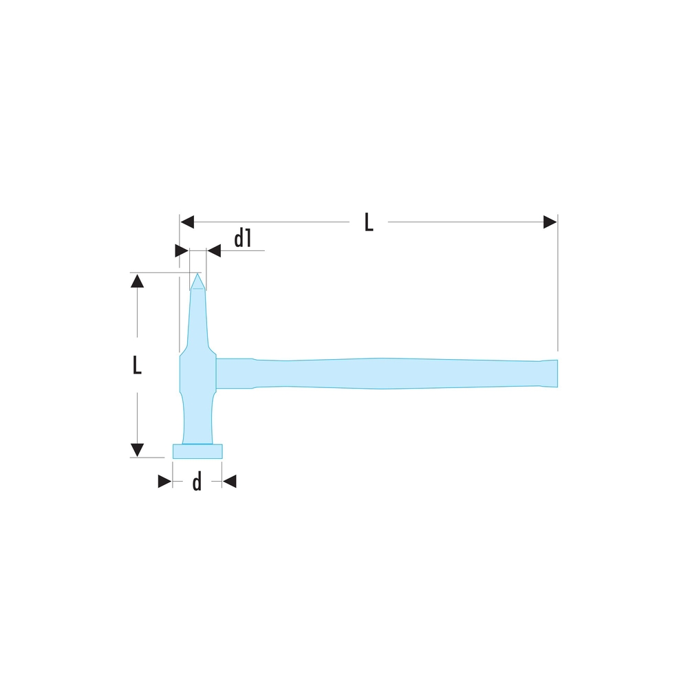 Avec une tête ronde de 40 mm et une panne de 23 mm, ce marteau est idéal pour des applications variées, allant du planage à la finition. Pour garantir sa longévité, des pièces de rechange pour le manche et le coin sont disponibles sous le code 211. MH26, assurant ainsi une durabilité accrue de votre outil.