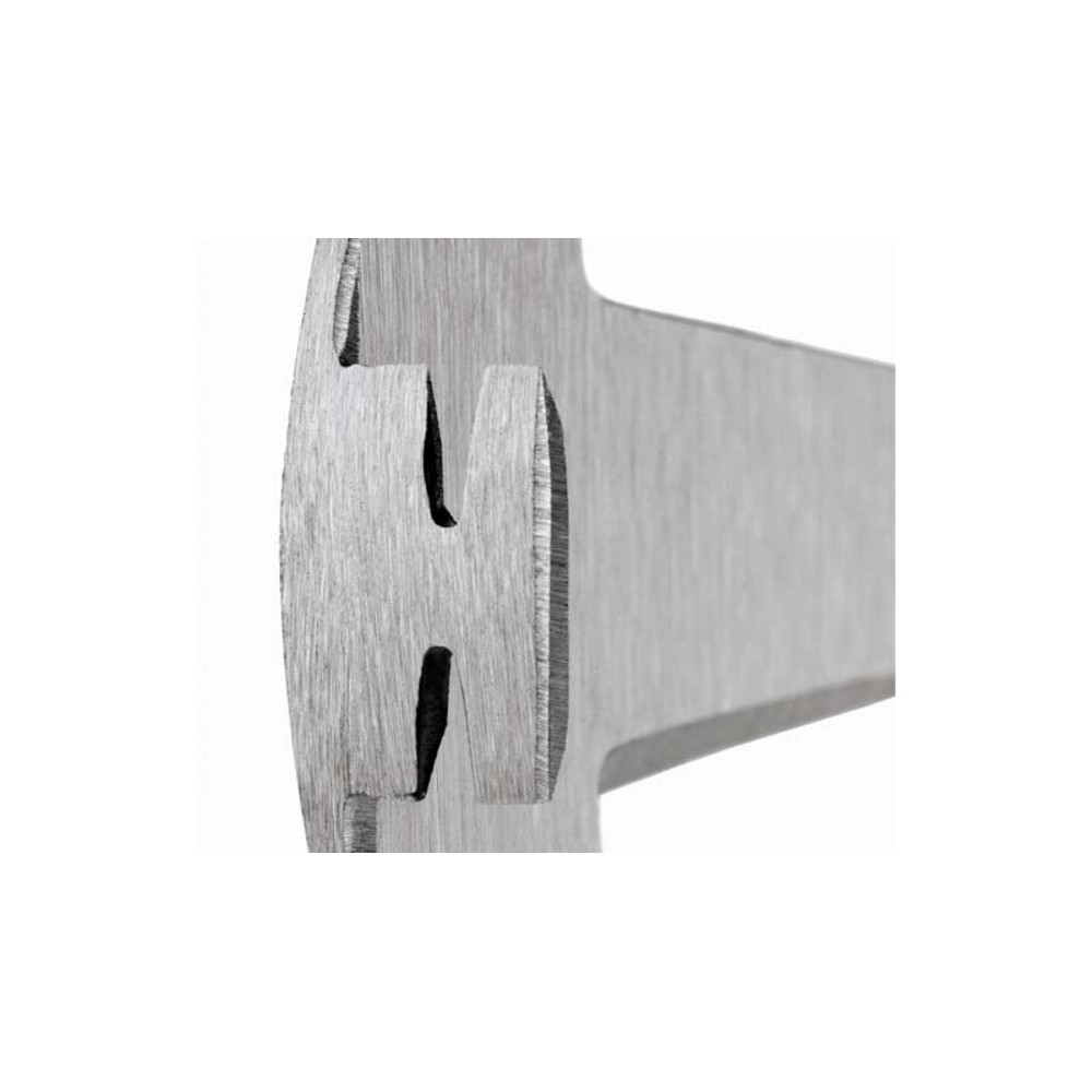 Cet outil est conçu pour les couvreurs-ardoisiers souhaitant réaliser des travaux de haute précision. Grâce à sa panne courte, il offre une frappe précise et contrôlée. Le tranchant latéral permet de tailler l’ardoise facilement, tandis que l’enclume sous l’outil guide le geste pour un travail soigné. L'arrache-clous à deux positions symétriques et l'embout pointu facilitent la perforation de l'ardoise avant le clouage sur la volige.