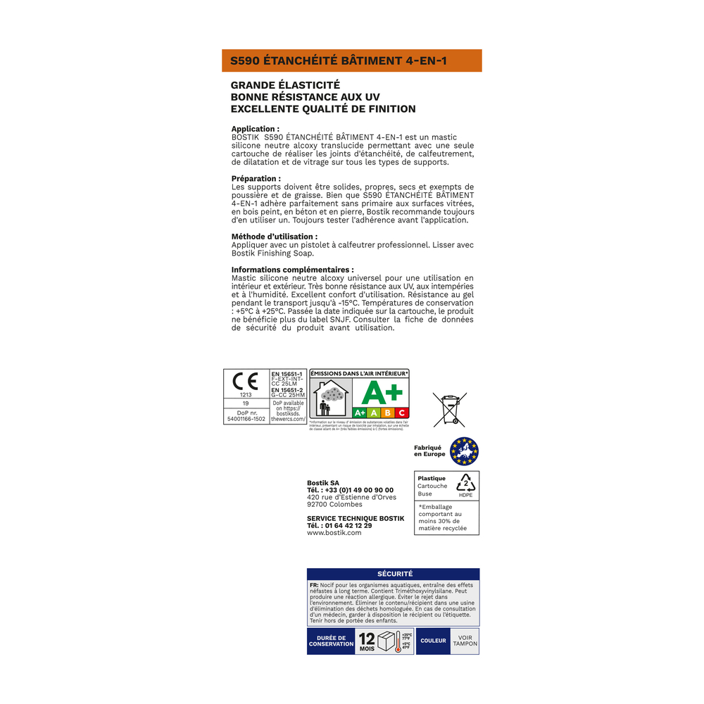 - Type de produit : Mastic d'étanchéité S590