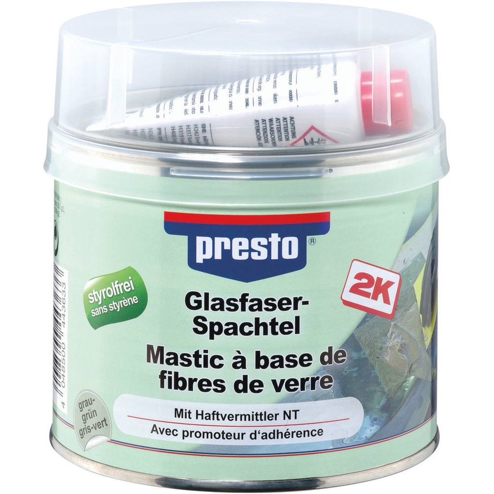 Découvrez Mastic polyester renforcé fibre de verre avec tube durcisseur - pot de 1kg PRESTO - 12029 disponible à l'achat