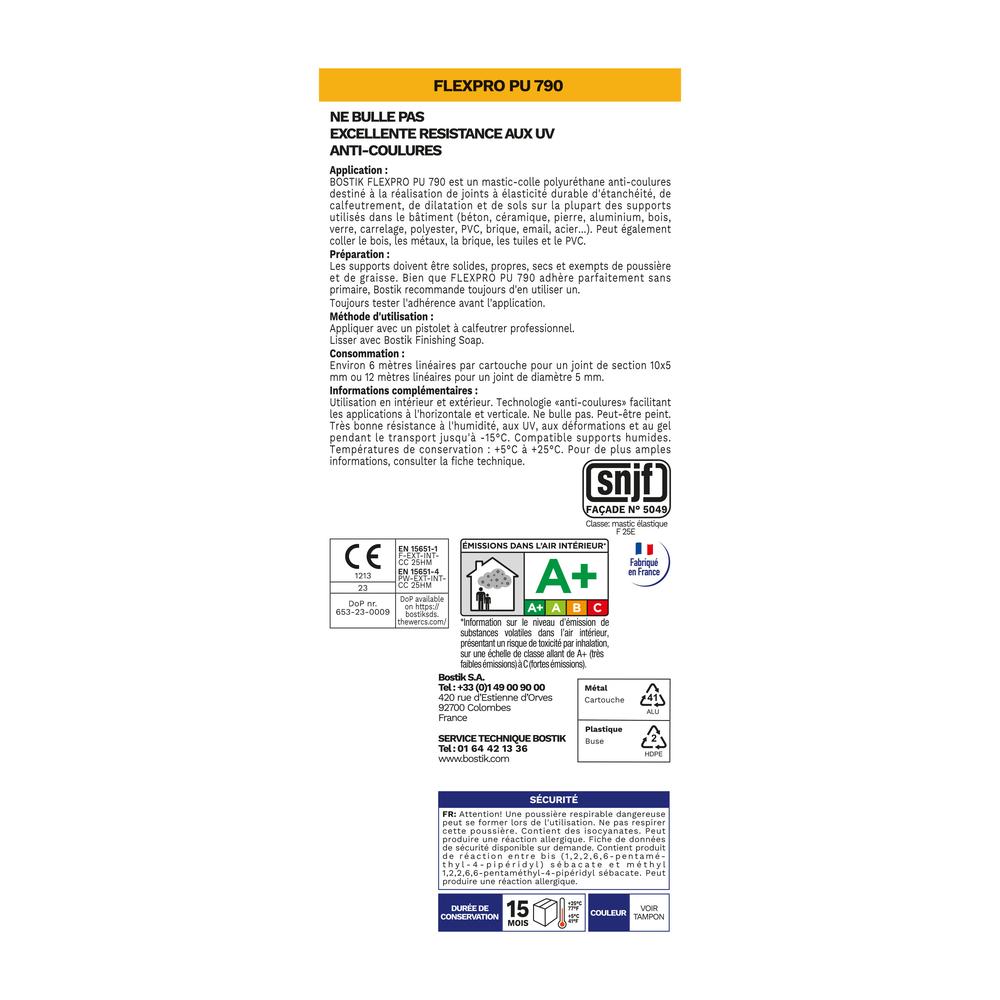 - Application : le joint doit être protégé des intempéries durant la pose. Utilisation recommandée de pistolet manuel Bostik, compatible avec pistolets pneumatiques ou électriques.