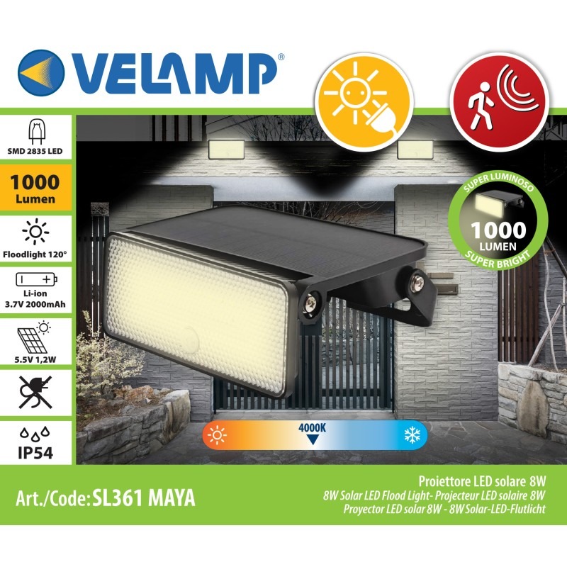 MAYA Projecteur LED solaire 1000 lumens avec détecteur de mouvement réglable - VELAMP - SL361