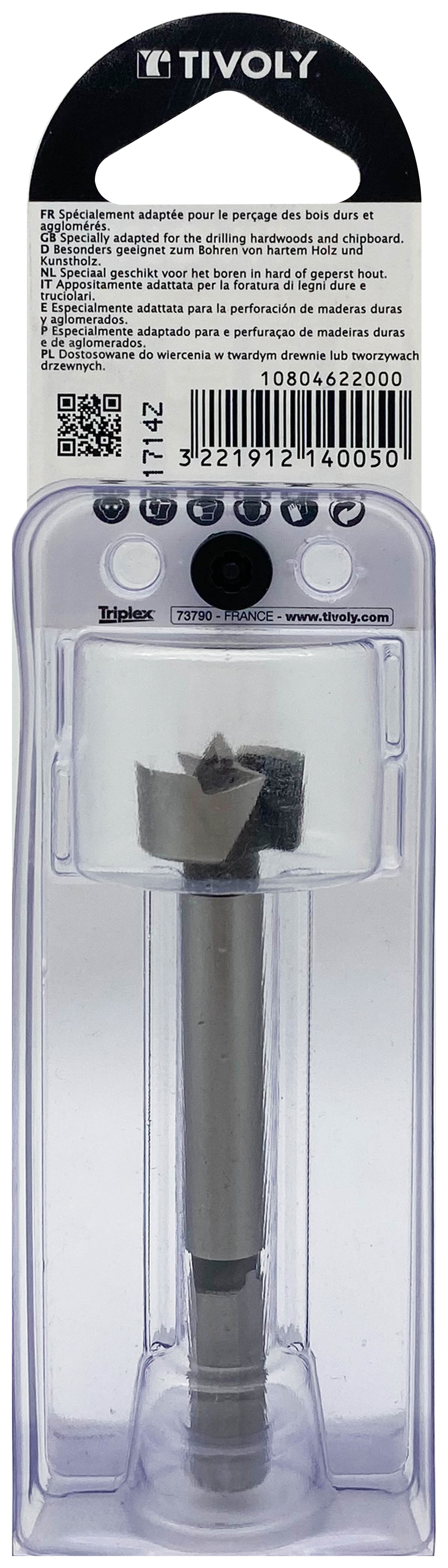 Foret performant pour le perçage de trou débouchant ou borgne de gros diamètres. Spécial façonnage de pièces d'ébénisterie. Peut s'associer avec une mèche à bouchonner.