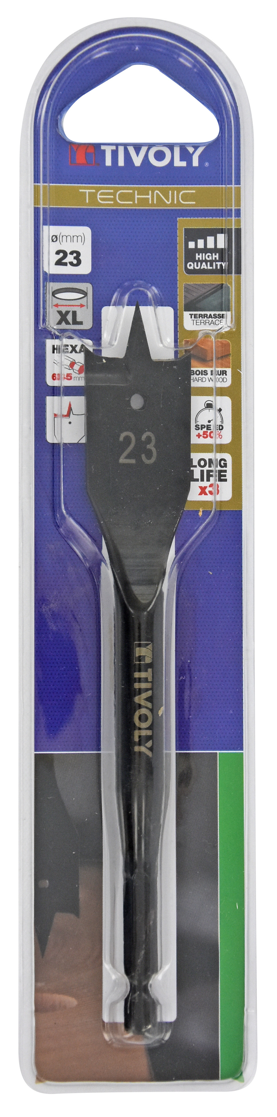 Mèche bois plate -Queue hexagonale -Corps renforcé (Blister) / L: 158 Ø: 23 TIVOLY - 10802522300