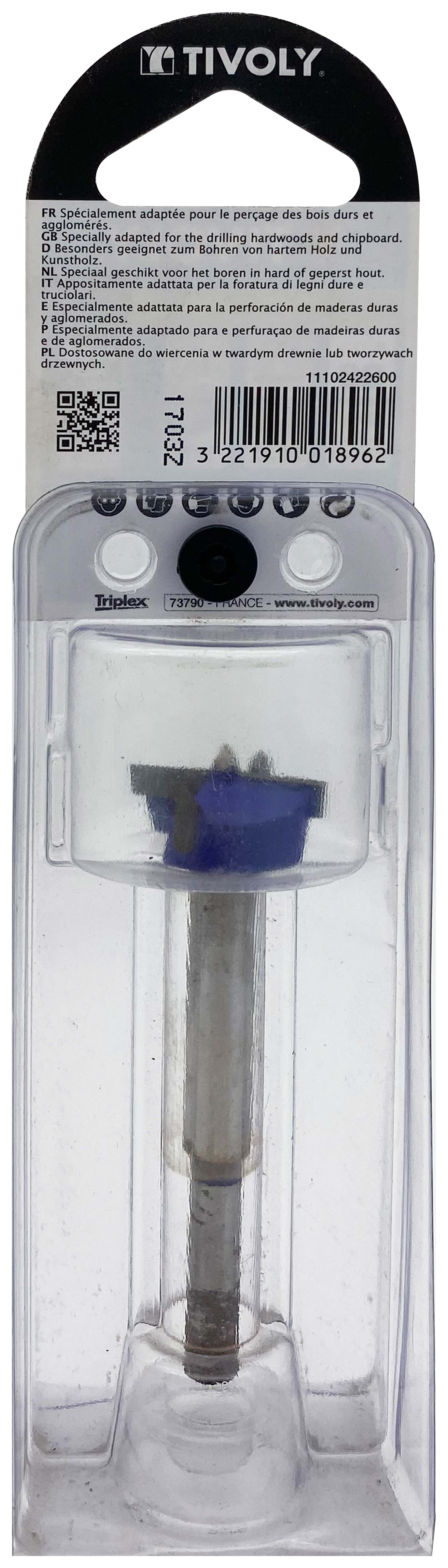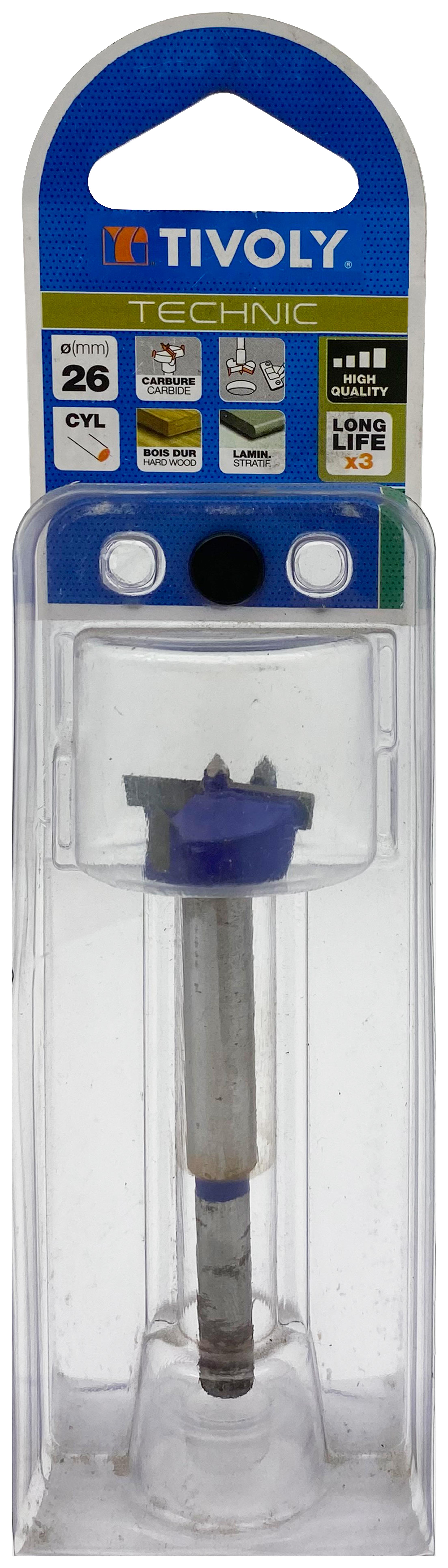 Découvrez Mèche charnière -Plaquette carbure -Queue cylindrique (Blister) / L: 79.5 Ø: 26 TIVOLY - 11102422600 disponible à l'achat