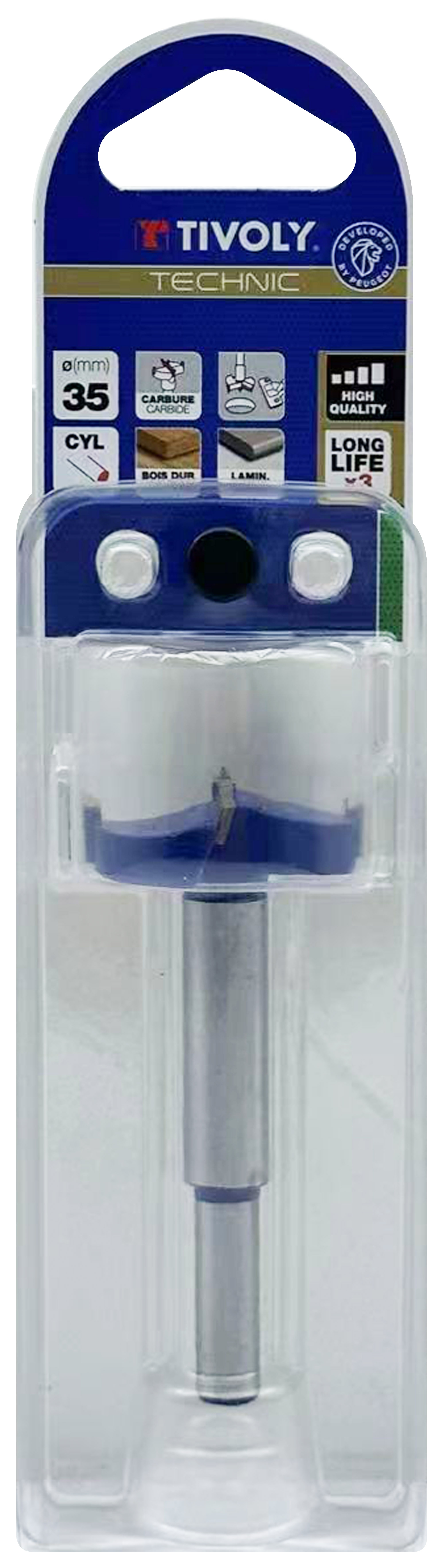 Découvrez le foret performant conçu spécialement pour le perçage de trous borgnes, idéal pour la pose de charnières. Ce produit associe durabilité et efficacité grâce à ses plaquettes en carbure, offrant une excellente résistance à l'usure.