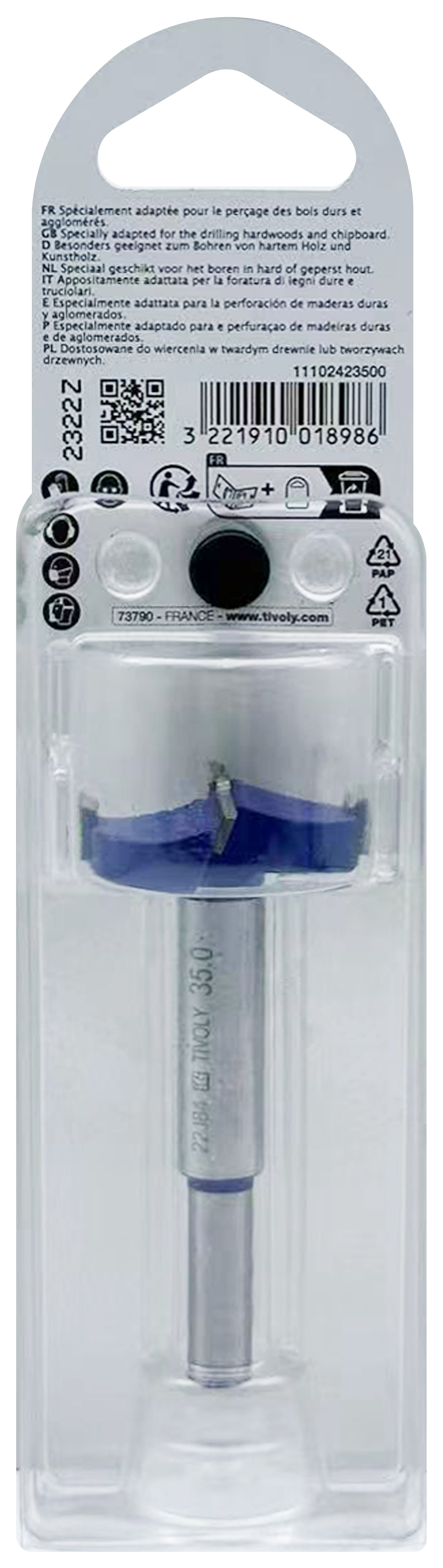 Découvrez Mèche charnière -Plaquette carbure -Queue cylindrique (Blister) / L: 79.5 Ø: 35 TIVOLY - 11102423500 disponible à l'achat