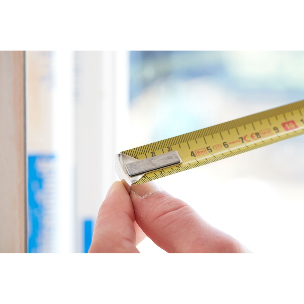 Fabriqué en France, ce ruban est protégé par un revêtement polyester haute protection, le rendant jusqu'à 10 fois plus résistant à l'abrasion. Son boîtier en ABS avec finition métal chromé est non seulement extrêmement résistant aux chocs et à la flamme, mais également compact pour une prise en main confortable. Avec une largeur de 25 mm, le ruban assure une grande visibilité allant jusqu'à 8 m. Le crochet à 3 rivets est 40 % plus solide, garantissant ainsi une durabilité accrue. La précision de cet outil est classée II, en faisant un choix idéal pour les professionnels et les amateurs.