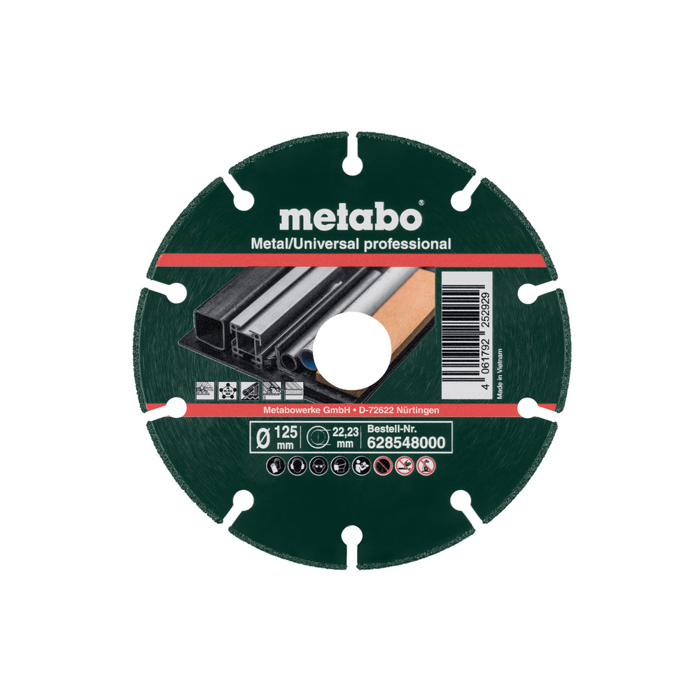 Meule de tronçonnage diamantée 125x1,3x22,23mm, « MUP », Métal/Universal « professional » - METABO - 628548000