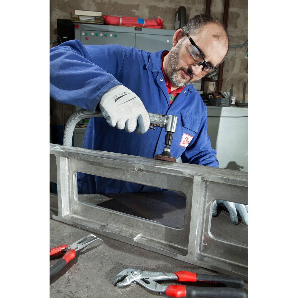 Cette meuleuse d'angle est dotée d’un régulateur d’air intégré, réglable avec un tournevis, permettant de maîtriser la puissance selon vos besoins. Sa tête angulaire facilite l’accès dans les zones difficiles, tandis que la gâchette progressive offre un contrôle optimal de la vitesse. Grâce à son échappement arrière, l’air est évacué efficacement, ce qui contribue à un environnement de travail plus silencieux.
