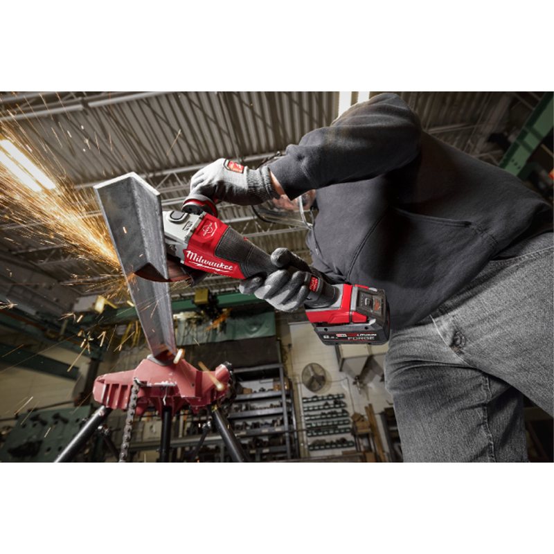 La meuleuse d'angle M18™ HIGH OUTPUT™ 125 mm offre des performances exceptionnelles, équivalentes à celles d'une meuleuse filaire de 1800W. Elle intègre la technologie RAPIDSTOP™, qui permet un freinage du disque ultra-rapide, renforçant ainsi la sécurité de l'utilisateur.