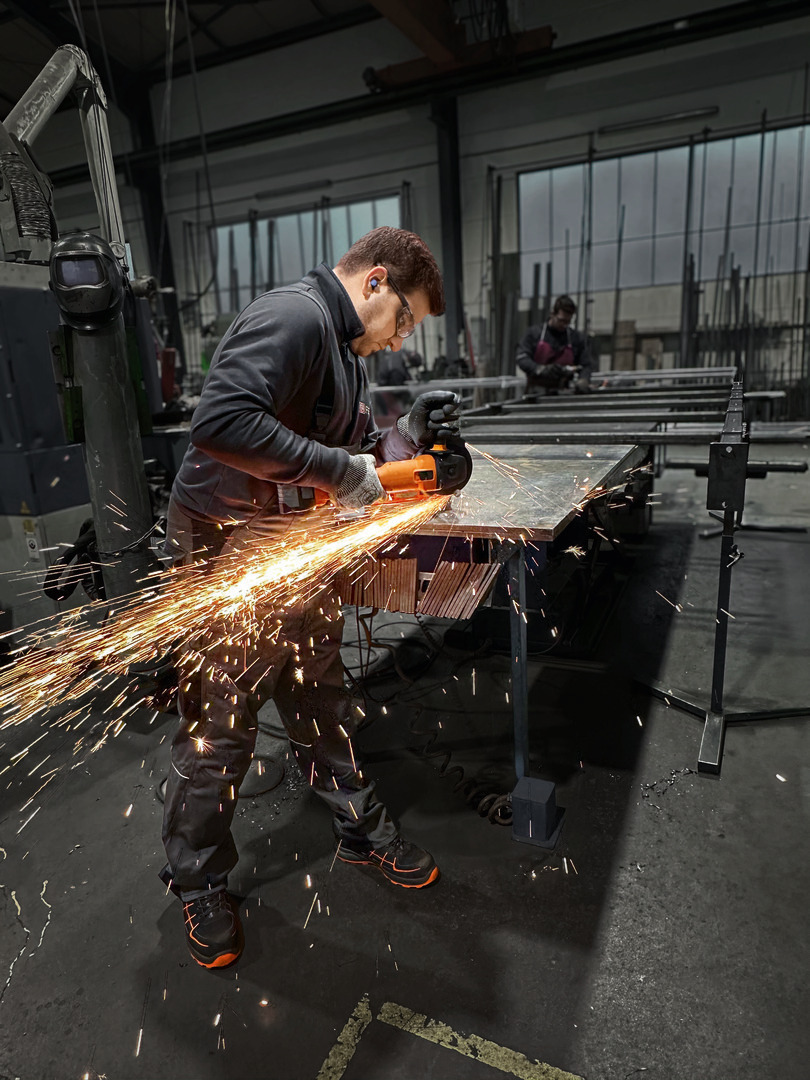 Meuleuse d’angle sans fil résistante à la poussière et puissante, pour des travaux efficaces de tronçonnage, de ponçage et d’ébavurage en utilisation sur chantier.