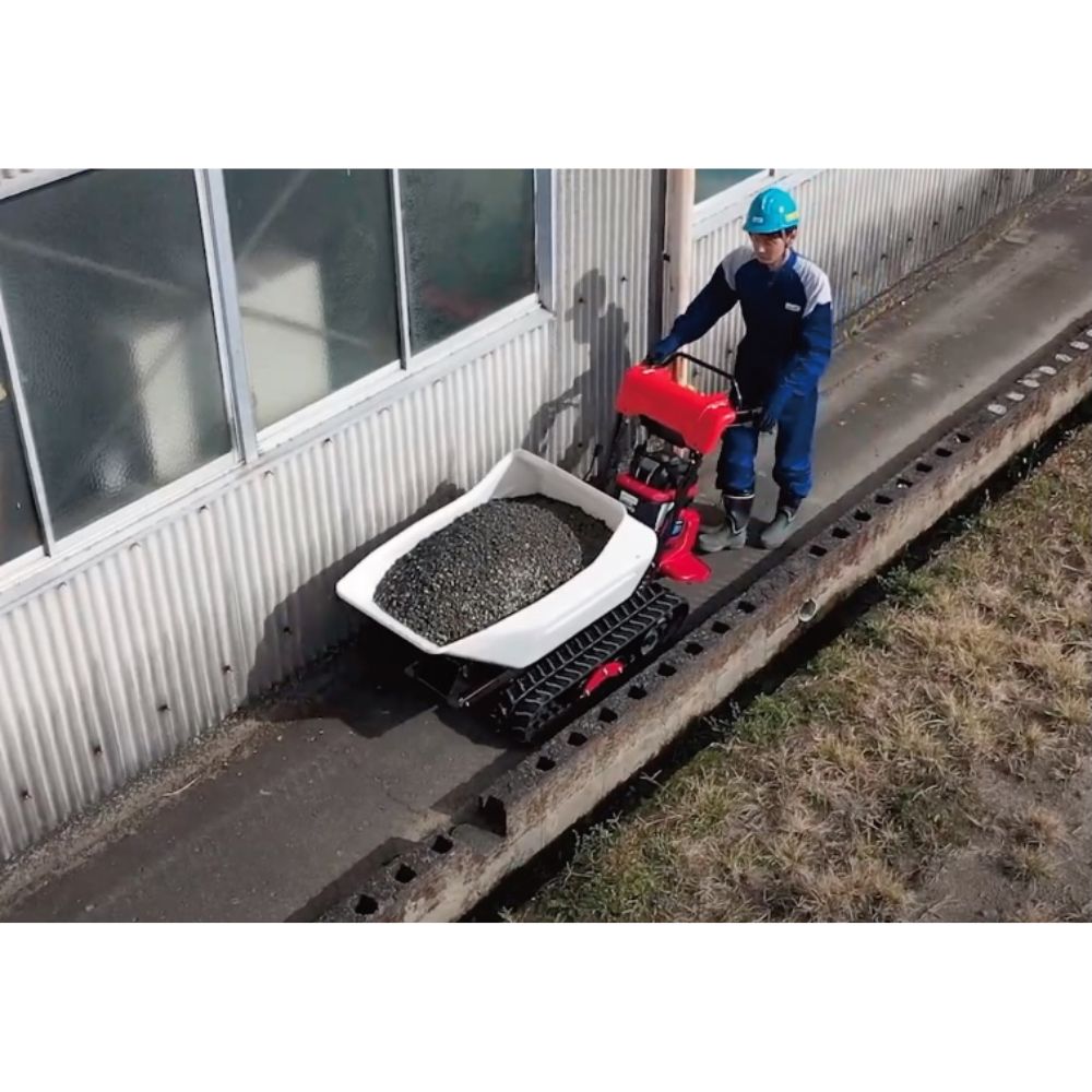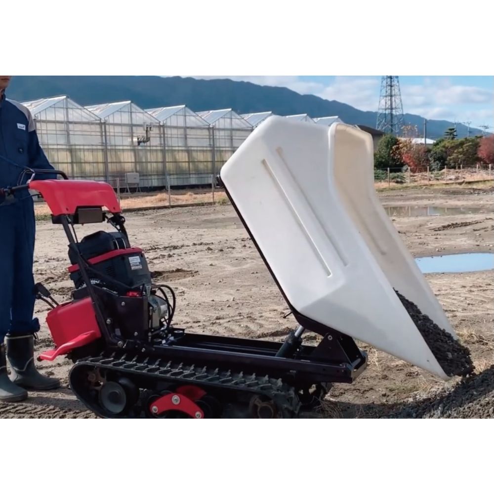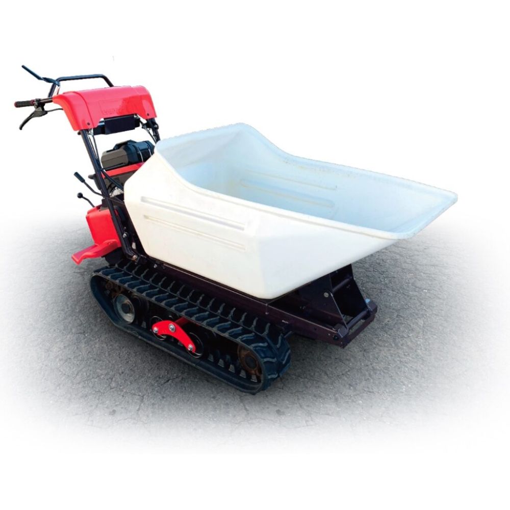 Le transporteur se déplace sur des chenilles larges de 180 mm, offrant une excellente adhérence et stabilité. Il dispose de quatre vitesses avant et deux vitesses arrière, avec une vitesse maximale de 3,3 km/h en avant et 2,5 km/h en marche arrière. Il peut franchir des pentes jusqu’à 26° à vide. Le système de refroidissement du moteur est assuré par air pulsé.