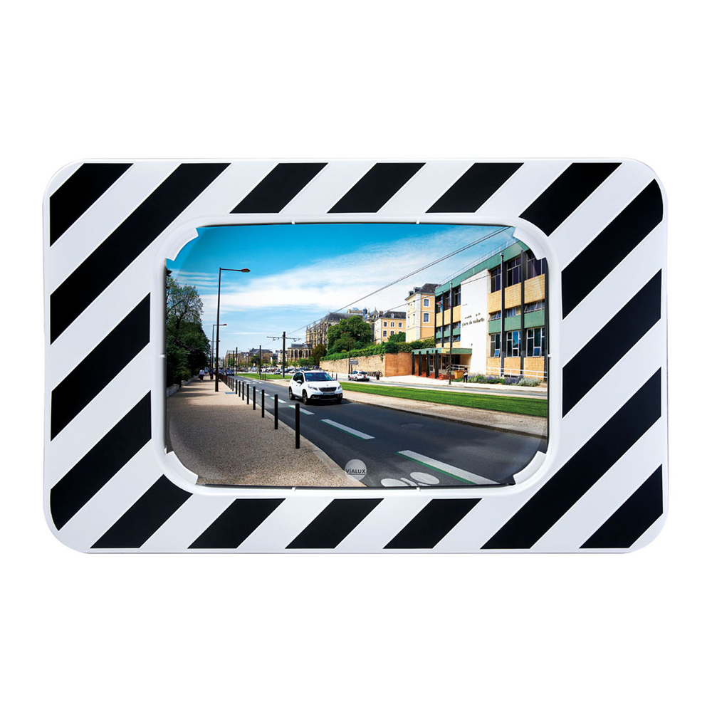 Le miroir d'agglomération Polymir et P.A.S est conçu pour offrir une visibilité optimale dans les zones urbaines critiques, tel que les intersections et carrefours dangereux. Sa dimension de 600x400 mm pour l'optique et 900x600 mm pour le cadre garantit une perception claire et immédiate des environnements routiers.