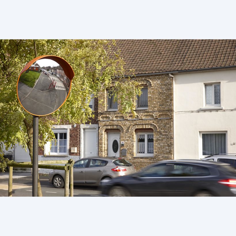 Améliorez la visibilité dans vos espaces avec le miroir de sortie Ø100cm, idéal pour les coins aveugles, intersections ou zones à visibilité réduite.