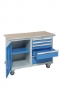 - Établi mobile doté de 5 tiroirs et d'une étagère réglable.