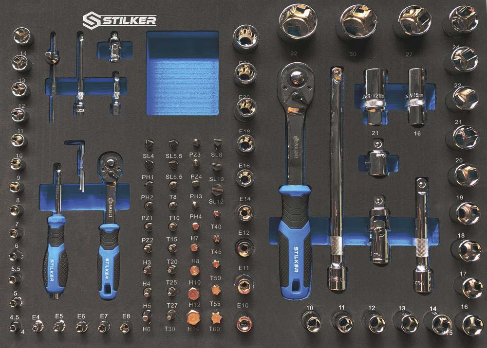 Module mousse 527x387mm douilles, cliquets 1/2' - 1/4' - 95 pcs - 9601