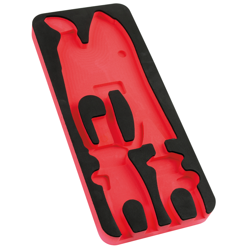 Module mousse vide conçu pour accueillir 4 pinces. La mousse bicolore de haute densité permet un rangement sécurisé des outils tout en étant résistante aux produits de l'atelier et à l'humidité.
