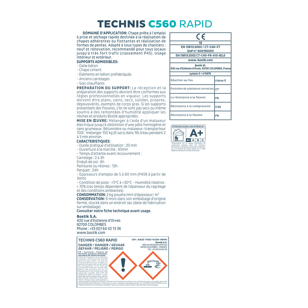 Découvrez le Mortier de chape prêt à gâcher Technis C560 Rapid de BOSTIK, une solution performante pour vos projets de construction et de rénovation.