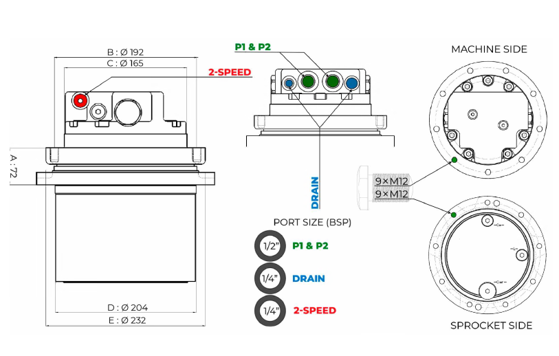 Moto-réducteur de qualité OEM se montant sur vos mini-pelles de 3 à 4 tonnes.