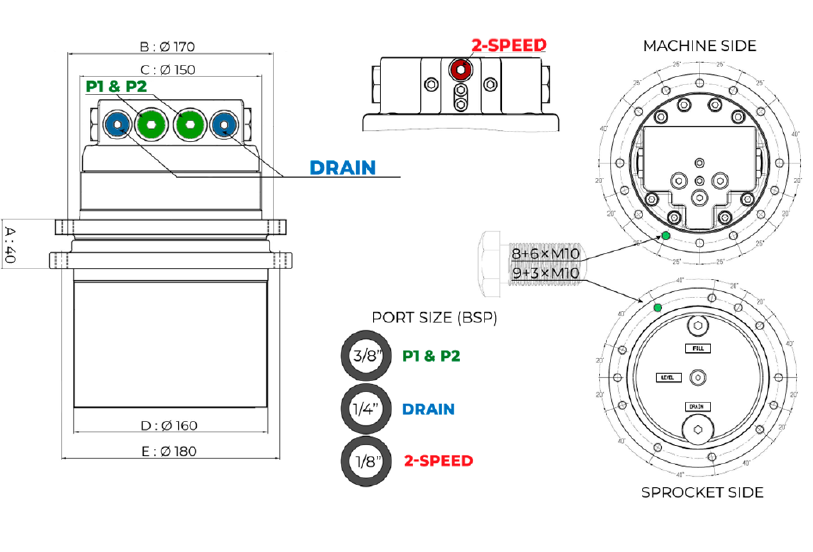Motoréducteur de qualité OEM se montant en lieu et place sur vos mini-pelles de 1.8 tonnes à 2.5 tonnes.