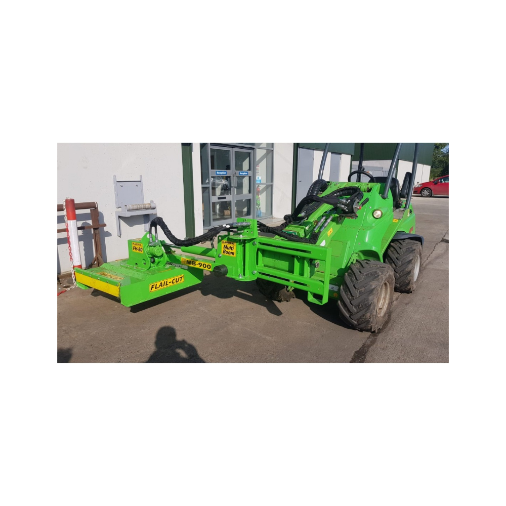 Le bras du MB900 dispose de 7 positions réglables, ce qui permet une rotation de 180° vers la gauche ou la droite de la machine porteuse. Cela offre une grande souplesse d’utilisation, notamment pour travailler en bordure de route, autour d’obstacles ou sur des talus. De plus, le bâti est conçu pour glisser latéralement, ce qui permet de déporter le bras de l’axe central et ainsi adapter parfaitement la position de travail à l’environnement.