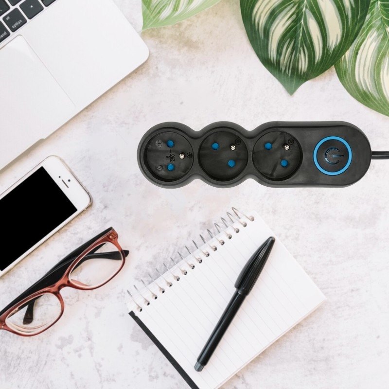 Un atout majeur de cette multiprise est son interrupteur lumineux intégré, qui vous permet de couper l’alimentation de tous vos appareils d’un simple geste. C’est une fonctionnalité pratique pour réduire la consommation d’énergie en veille et améliorer la sécurité lorsque vous quittez la maison ou la pièce.
