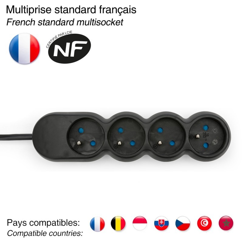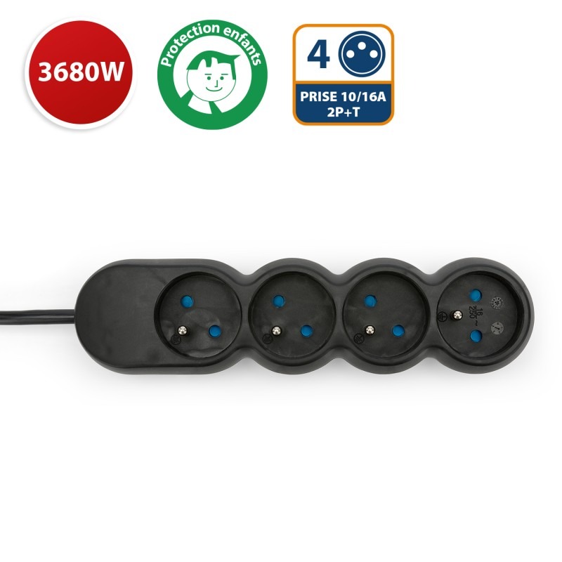 Multiprise 4 prises 16A avec protection enfant - câble 1,5m - VELAMP - MULTIP-FR-4K