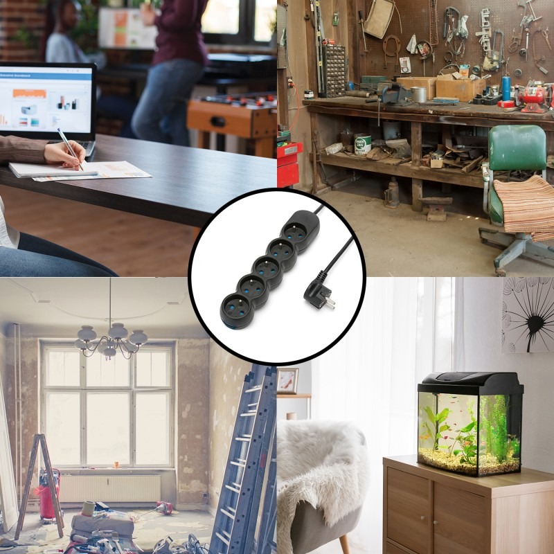 Avec une puissance maximale admissible de 3680W sous 230V, cette multiprise peut alimenter en toute sécurité plusieurs appareils simultanément : téléviseur, ordinateur, chargeur de téléphone, petit électroménager ou encore lampe. Son design sobre en noir lui permet de s’intégrer discrètement dans tous les environnements, qu’ils soient modernes ou plus traditionnels.
