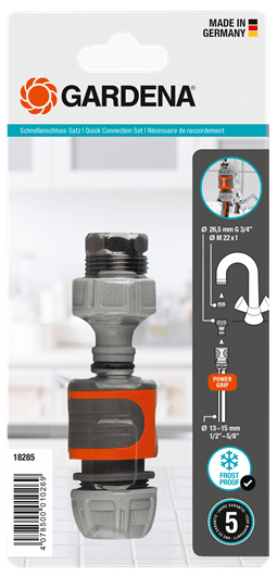 Garantie 5 ans *Pour obtenir les conditions de garantie détaillées, veuillez-vous référer au manuel d’utilisation fourni ou disponible en ligne sur www.gardena.com/warranty. Ces conditions de garantie s’ajoutent à la garantie légale. Qualité maximale Des produits de qualité fabriqués en Allemagne : Gage de performance, fiabilité et d'innovation permanente. Kit complet Avec ce kit, vous disposez de toutes les pièces nécessaires pour un raccordement rapide au robinet. L'Original GARDENA System L'ensemble des accessoires d'arrosage de l'Original GARDENA System (nez de robinet, raccord d'arrosage, tuyau d'arrosage, pistolet d'arrosage) se raccorde entre eux en un 'clic'.