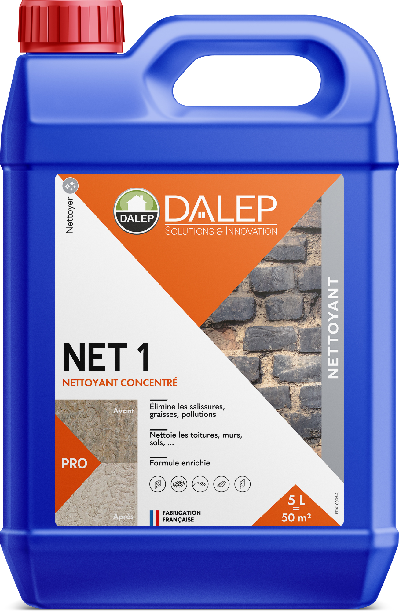 Le Nettoyant Concentré NET 1 - Bidon 5 L DALEP est un produit incontournable pour les professionnels souhaitant effectuer un nettoyage en profondeur. Sa formule alcaline surpuissante permet de traiter efficacement les salissures, graisses et pollutions sur diverses surfaces extérieures. Conçu pour répondre aux exigences élevées du secteur du bâtiment, ce nettoyant offre des résultats visibles, facilitant ainsi l'entretien et la rénovation des façades, toits et dallages.