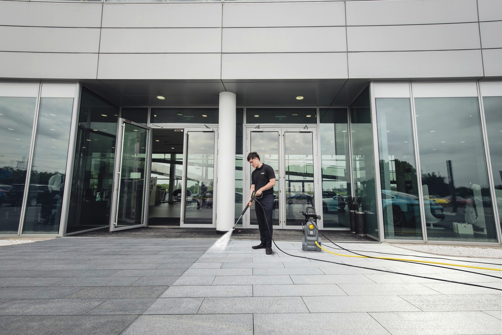 Nettoyeur haute pression compact HD 4/10 X Plus Classic avec rotabuse et enrouleur de flexible. Ergonomique et mobile grâce à une poignée de transport télescopique et aux roues robustes.
