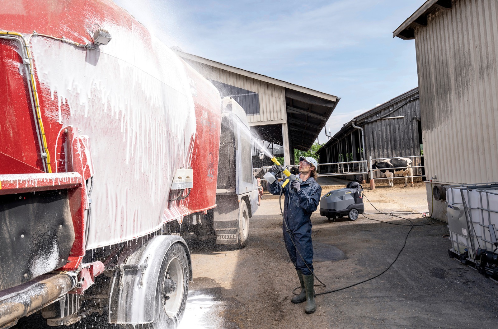 Nettoyeur haute pression à eau chaude simple d'utilisation et performant avec moteur électrique à 4 pôles refroidi par eau, mode eco!efficiency économique et deux réservoirs à détergent.