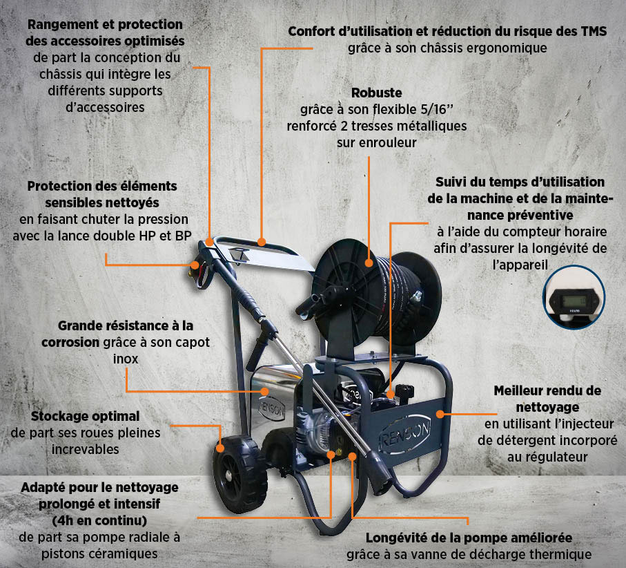 Découvrez NETTOYEUR HAUTE PRESSION TRIO DIRECT EAU FROIDE 200B - 15L/MIN - ENROULEUR 20M - RENSON - 142514 disponible à l'achat