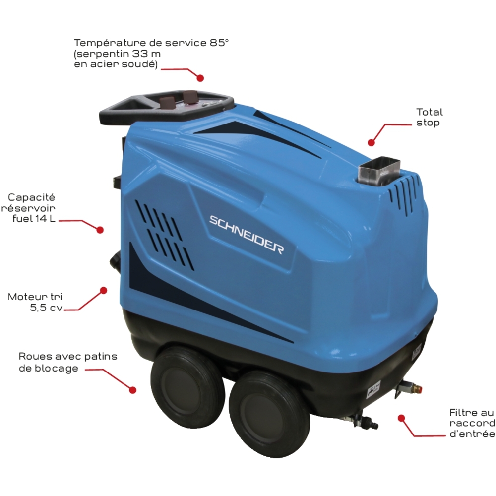 Nettoyeur HP eau chaude 380V 14 l/min 160 bar avec flexible 20m et total stop SCHNEIDER NHP - 50092