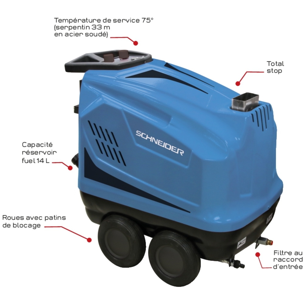Nettoyeur HP eau chaude 230V 9 l/min 150 bar flexible 10m et total stop SCHNEIDER NHP - 50081