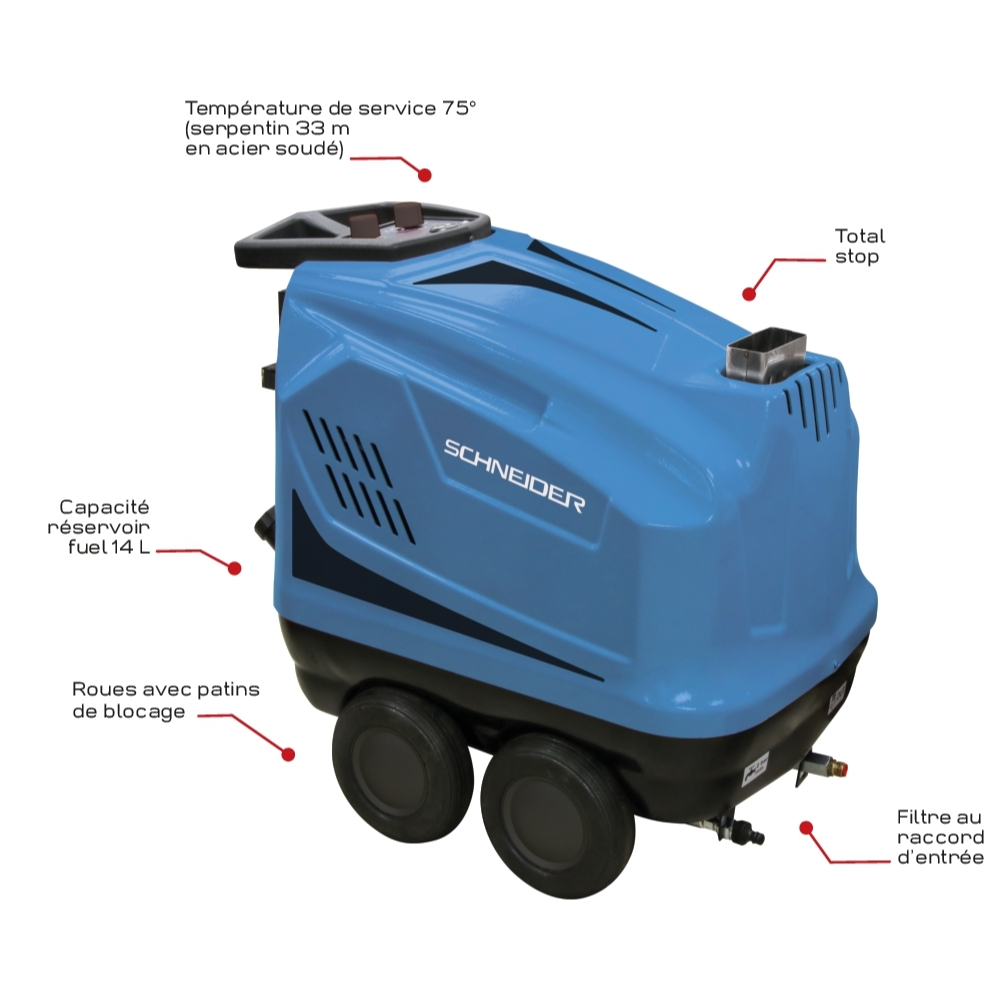 NETTOYEUR HP EAU CHAUDE MONO 540L/H 150 BARS + FLEXIBLE 20M - SCHNEIDER NHP - 50084
