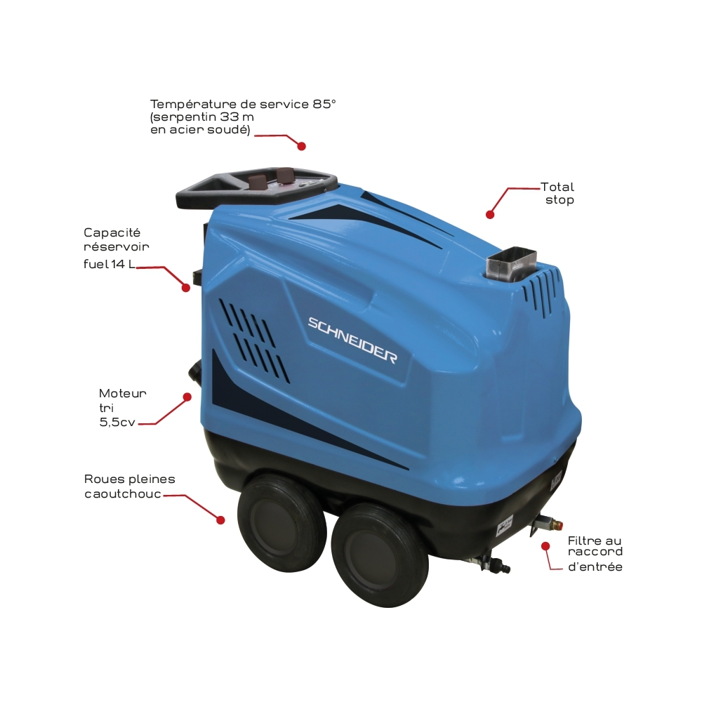 NETTOYEUR HP EAU CHAUDE TRI 840L/H 160 BARS + FLEXIBLE 10M - SCHNEIDER NHP - 50089